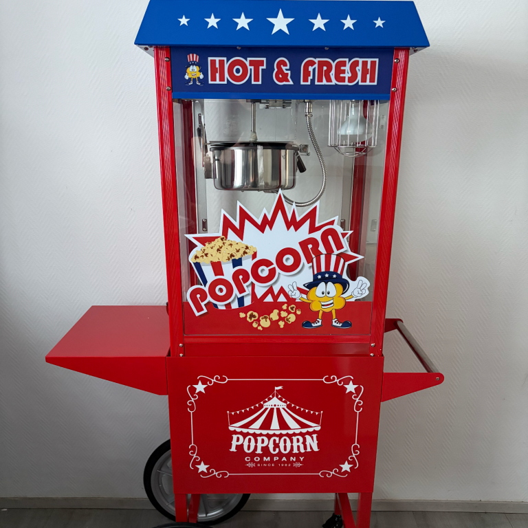 Das duftende Poppen des frisch zubereiteten Popcorns und der goldene Glanz im beleuchteten Ausgabebereich sorgen garantiert für echte Kirmes-Atmosphäre und strahlende Gesichter bei jedem Event!