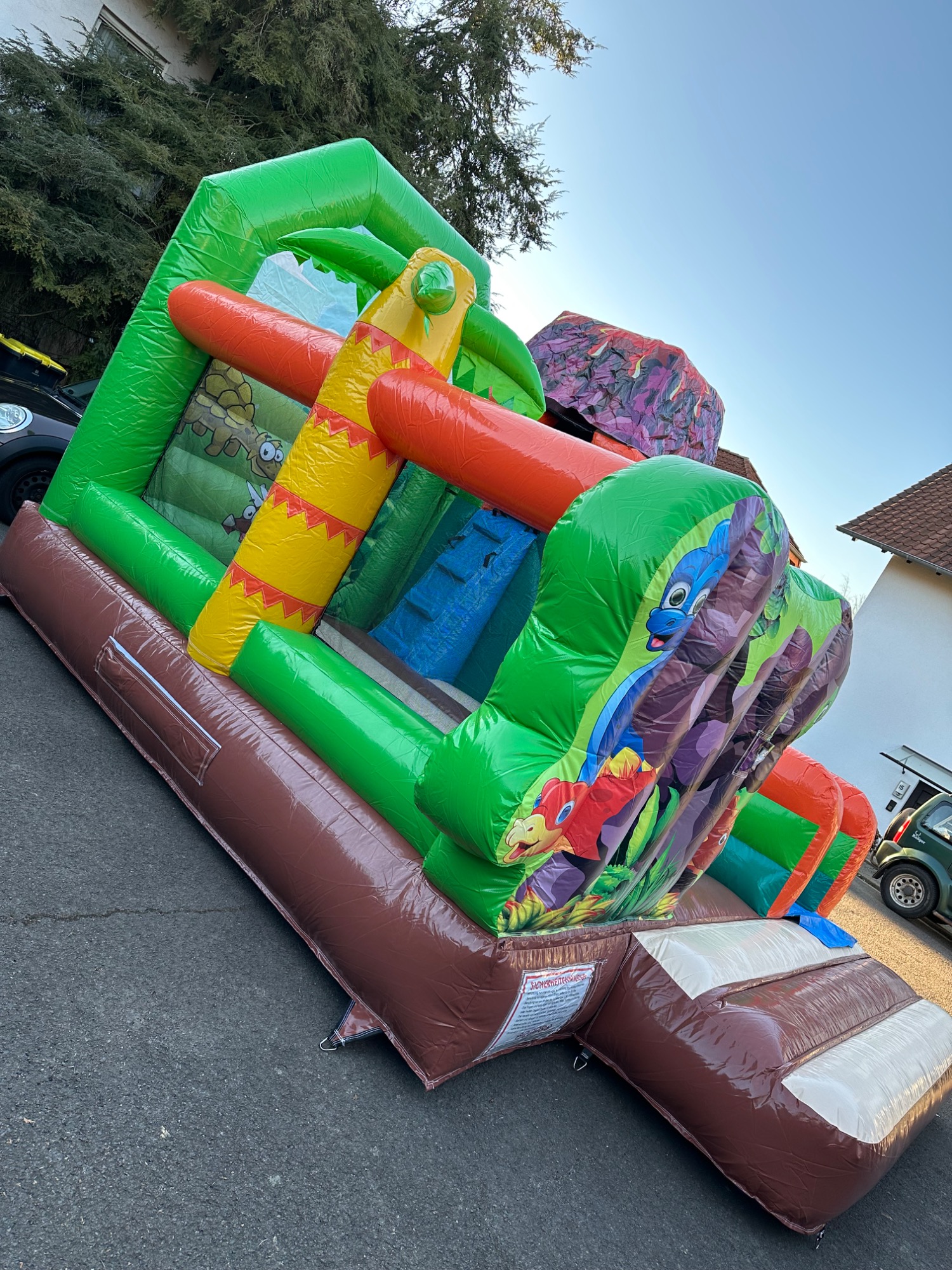 1x Hüpfburg mit Rutsche (Größe L, beispielsweise Dinowelt, Feuerwehr)
